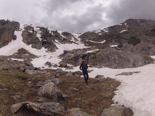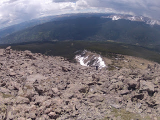 Dana dropped Mike and me off above the small town of Red Cliff on Hwy 24 from where we planned to run to Vail to meet back up with her, the kids and other friends at the Teva Mountain Games. The road up towards Shrine Pass was an absolute joy to run, so Mike and I set a good honest pace while enjoying the Holy Cross couloir views from on high. About seven miles in at a little under 11,000 feet we cut left on Lime Creek Road before hanging a right onto Bowman's Cut-off Trail in the direction of Two Elk Trail and the Vail Back Bowls. We got snarled up a bit in snow and deadfall on the north-facing slopes on Bowman's Cut-off, but were rewarded with killer views of the Gore Range from the high point of the run at around 11,700 feet. Running late again due to the snow and deadfall, I told Mike I'd meet him back in Vail before setting off with a general idea of what I needed to do to get there. After climbing one of the Vail back bowls to the Vail Mountain ridge, I made one wrong descent attempt into thick trees and snow, reascended and then ended up shooting straight down the Highline ski run at max pace. Just as I popped out, Mike emerged on the service road and we hit the remaining two or so miles together back into Vail. Good little outing.