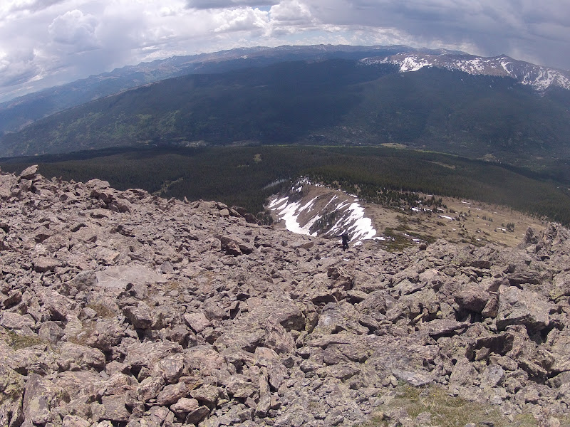 No trip with Mike would be complete without at least some directional doubt, and indeed below treeline on the way back down we managed to get completely turned around in search of the lake, wasting a good 45 minutes slopping around in marshes, climbing deadfall and generally wondering where the hell we were before finally finding the lake and zipping back down the trail to the car. According to the summit register, we were just the second party up in 2012, which is one of the best reasons I can think of to enjoy Colorado summit views from vantage points under 14,000 feet.