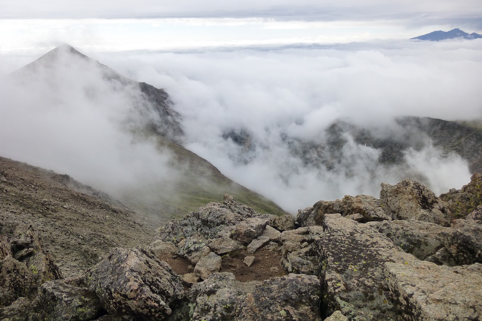 Sat - 16 miles (5,000'). Hagues Peak (13,571') from Lawn Lake TH. Had originally planned to tag Tileston and Bighorn (two ranked Larimer 11ers) on the way back down, but the mountains were socked-in below 11,000 feet so route finding would have been super challenging. Decided instead to take some extra time on top of Hagues enjoying the cloud cover and views of the Glacier Gorge section of the Continental Divide to the south. A full Mummy Traverse next weekend, I think. Still a good bit of soreness in the quads on the last few miles of the descent.